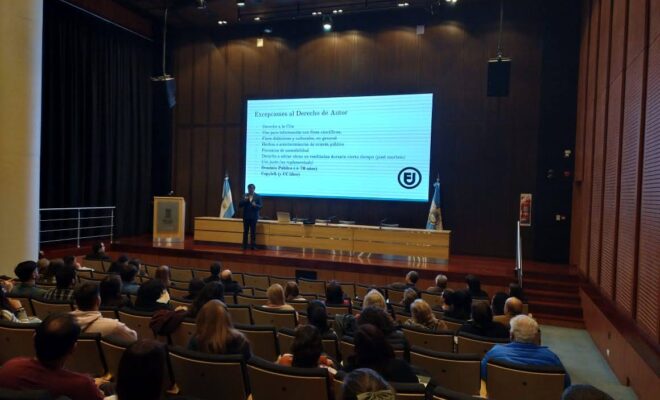La disertación principal estuvo a cargo del abogado Matías Germán Rodríguez, quien se refirió a los conceptos inherentes al Derecho de Autor: características, alcances, límites y excepciones. Luego pasó a integrar el panel donde diversos especialistas ofrecieron sus perspectivas y experiencias en este campo.