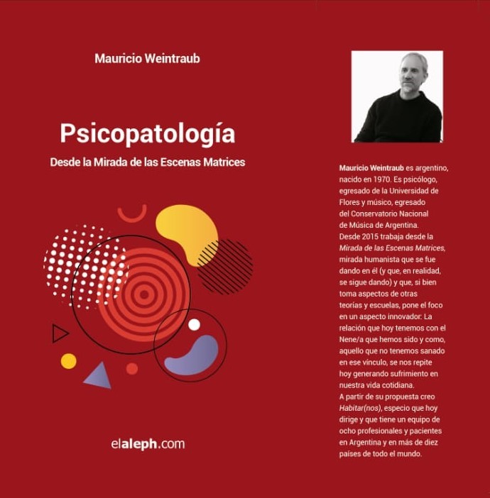 El nuevo libro del Mauricio Weintraub a presentarse el 22 de marzo próximo, detalla síntomas de cuadros psicopatológicos y procesos que se manifiestan en la persona que los padece. La estructura de contenidos invita a repensar el abordaje desde la mirada de las escenas matrices, sin circunscribir al paciente a la diagnosis de la descripción sintomática. Promueve entender y contactar humanamente con quien padece para, a partir de no perderlo en la etiqueta diagnóstica, poder darle una mano que lo ayude a ir hacia adentro y a dar el próximo paso.